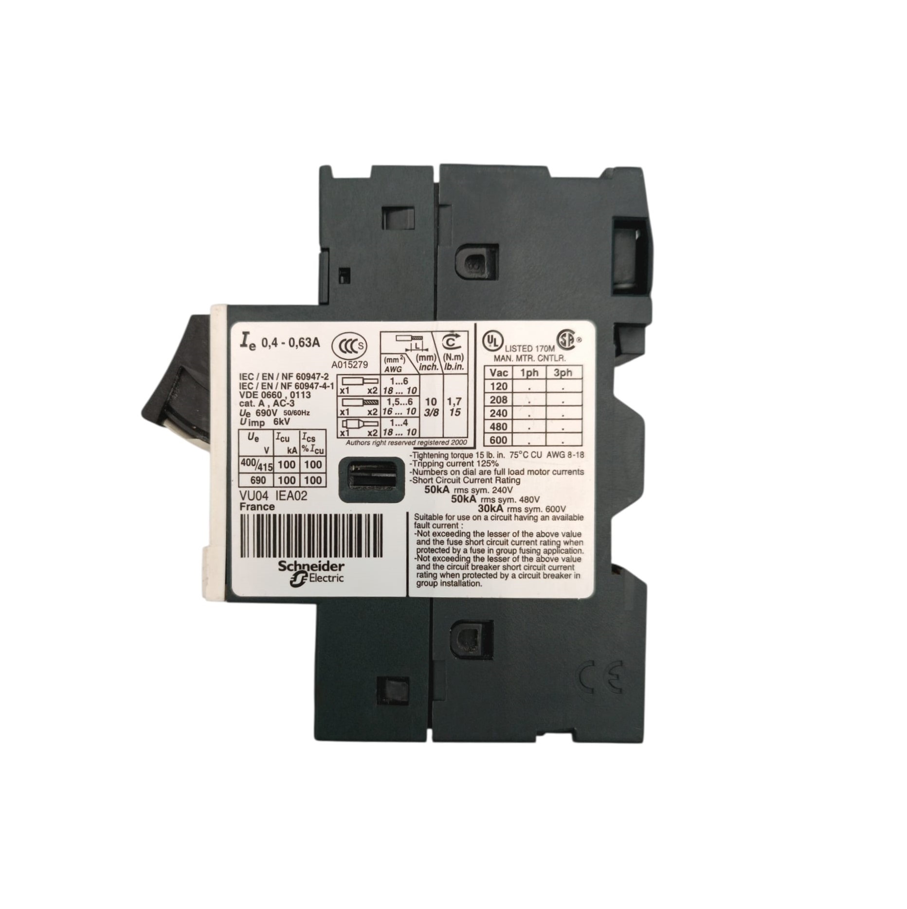 RELÉ TELEMECANIQUE GV2ME04/0.40-0.63A IE 0.4- 0.63A 690 V 50/60 Hz