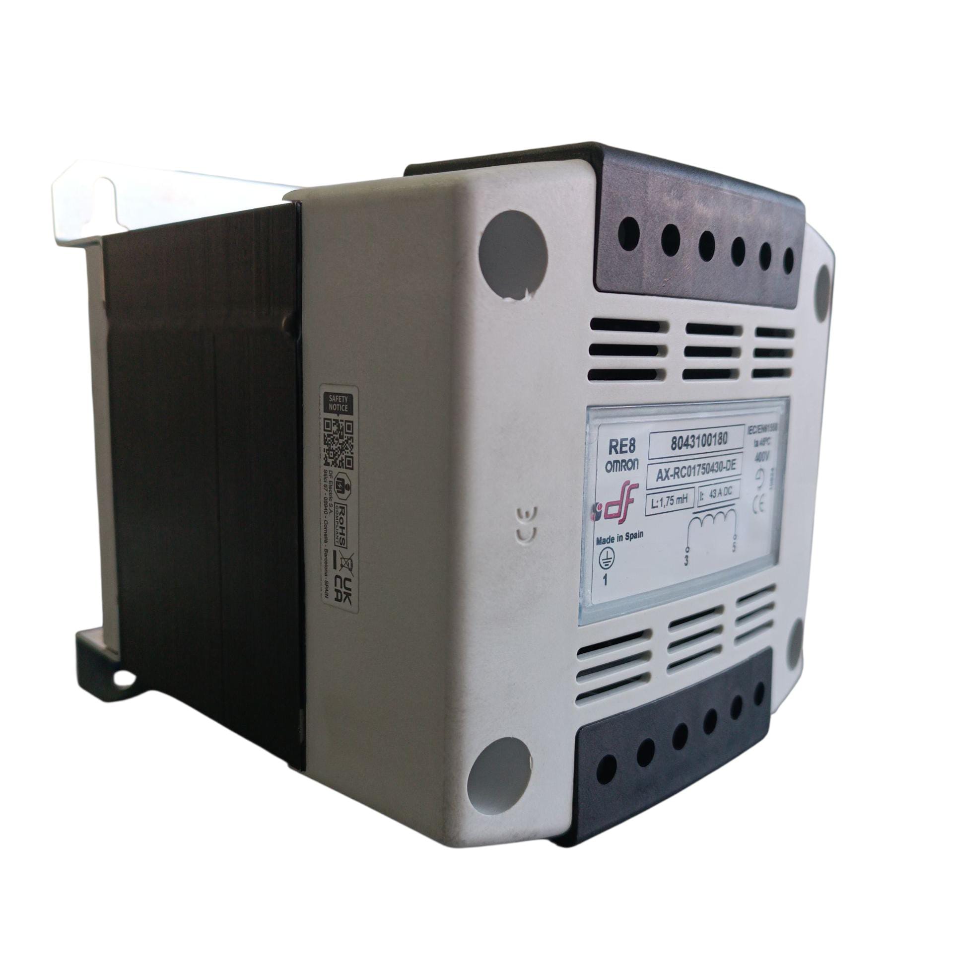 El reactor de enlace de CC de Omron cuenta con una corriente nominal de 43 A y una inductancia de 1,75 mH. Está diseñado como un accesorio para controladores de motor para una potencia máxima aplicable de 15 kW a 400 V CA. Ayuda a mejorar la eficiencia del sistema al reducir los armónicos y garantizar un suministro de energía estable al motor.