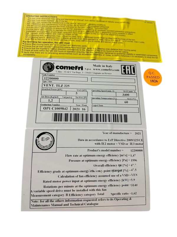 VENTILADOR COMEFRI TLZ225 5KW